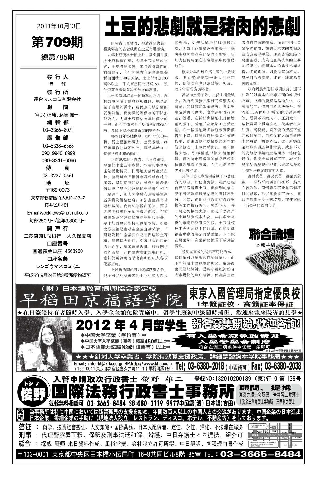 | 联合周报709期10月13日版 第1页 |