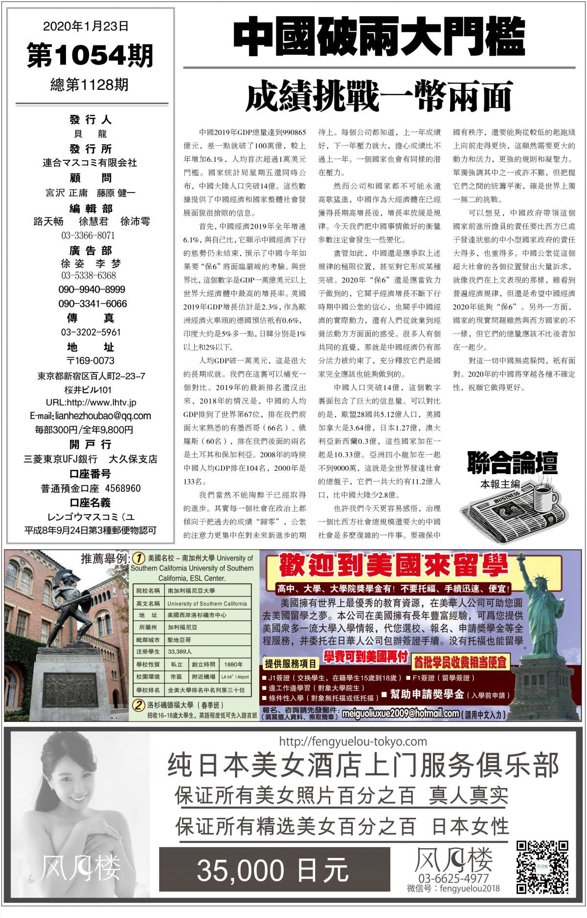 | 联合周报1054期1月23日版 第1页 |