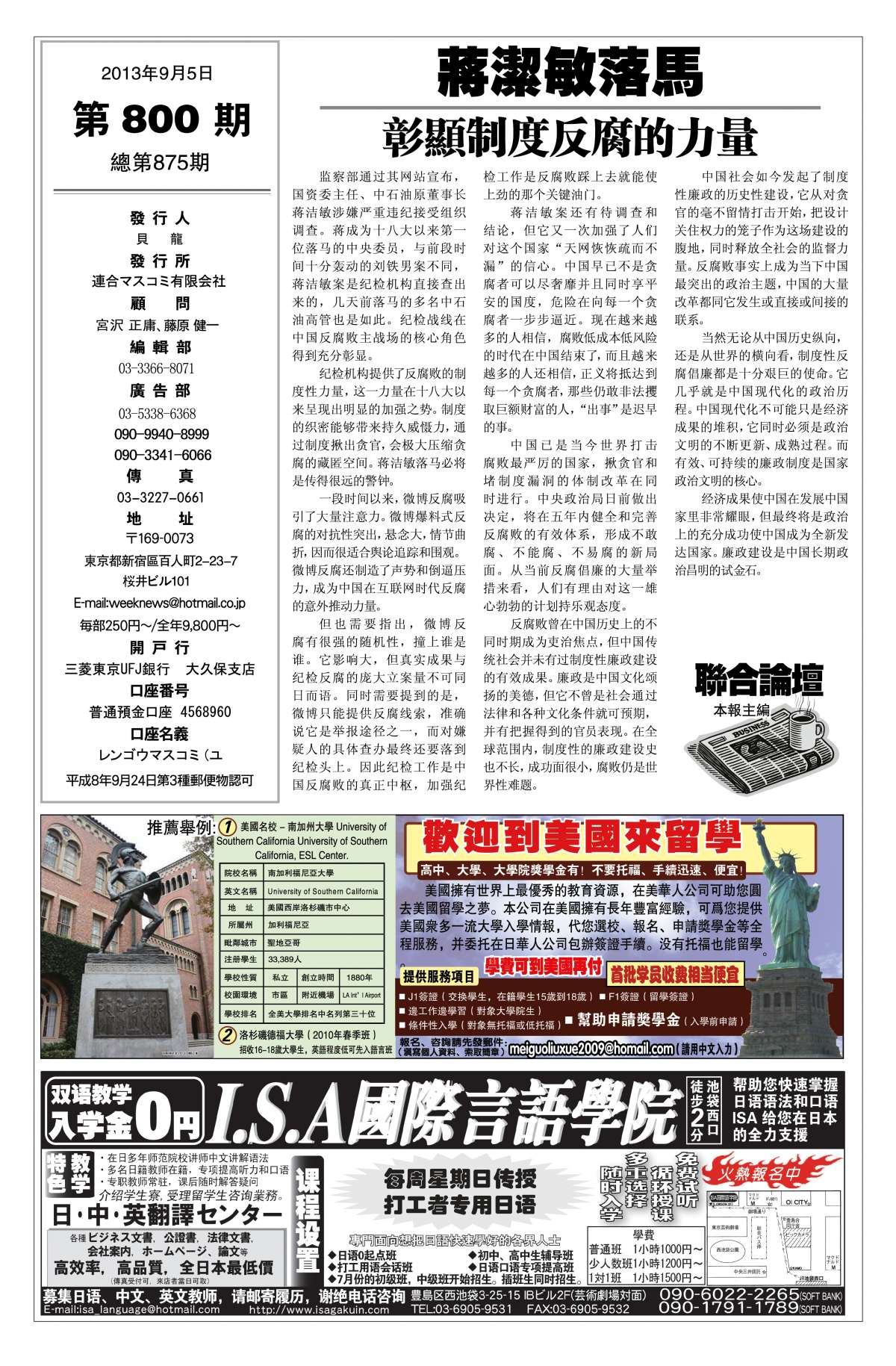 | 联合周报800期9月5日版 第1页 |