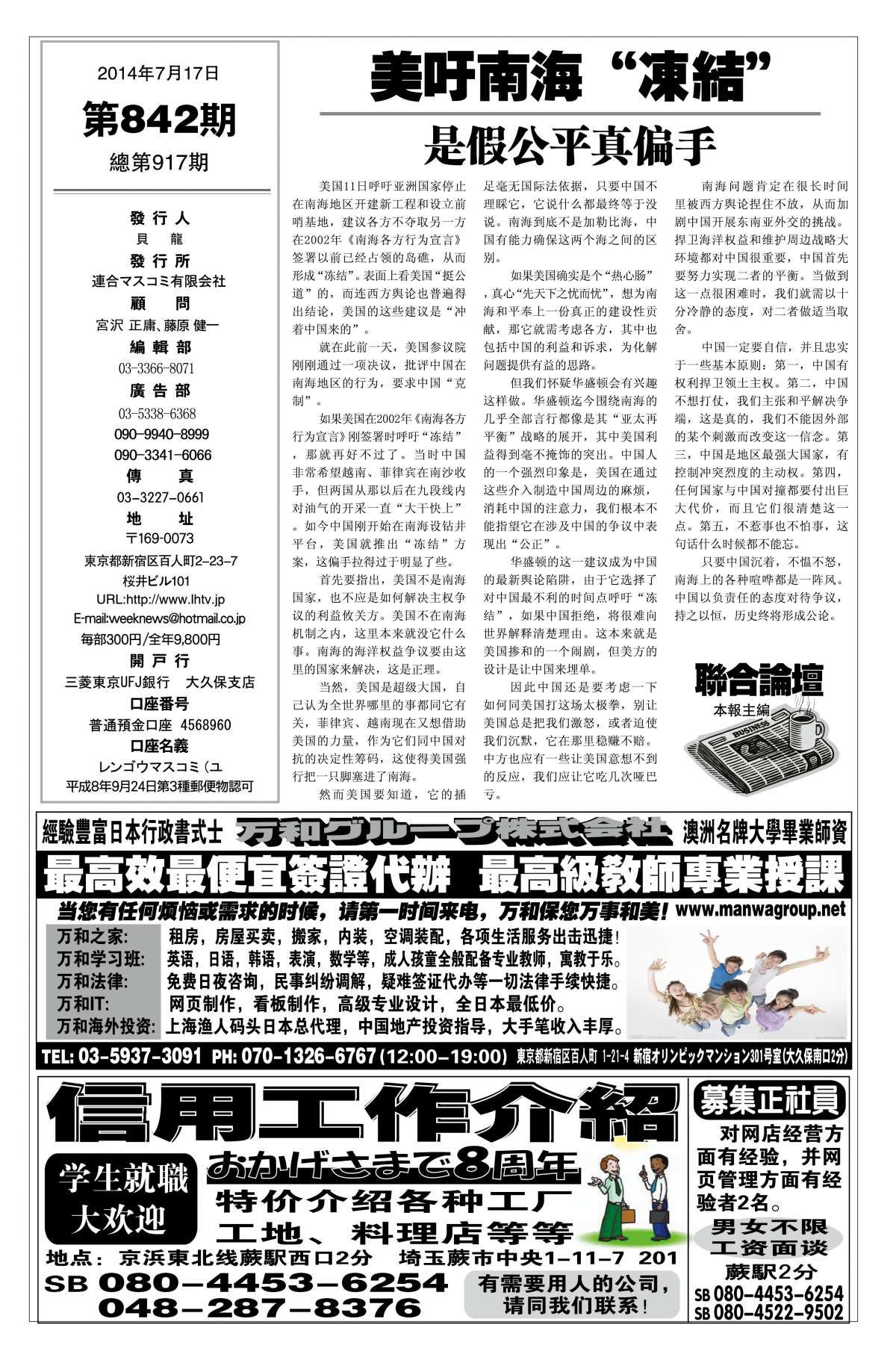 | 联合周报842期7月17日版 第1页 |