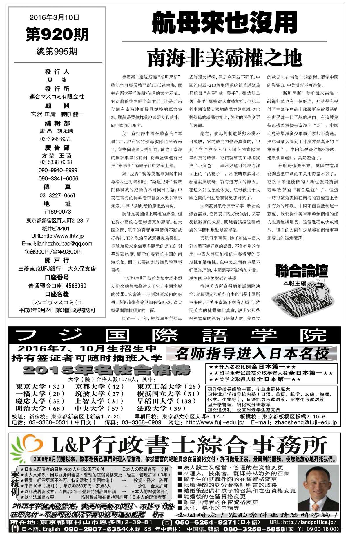 | 联合周报920期3月10日版 第1页 |