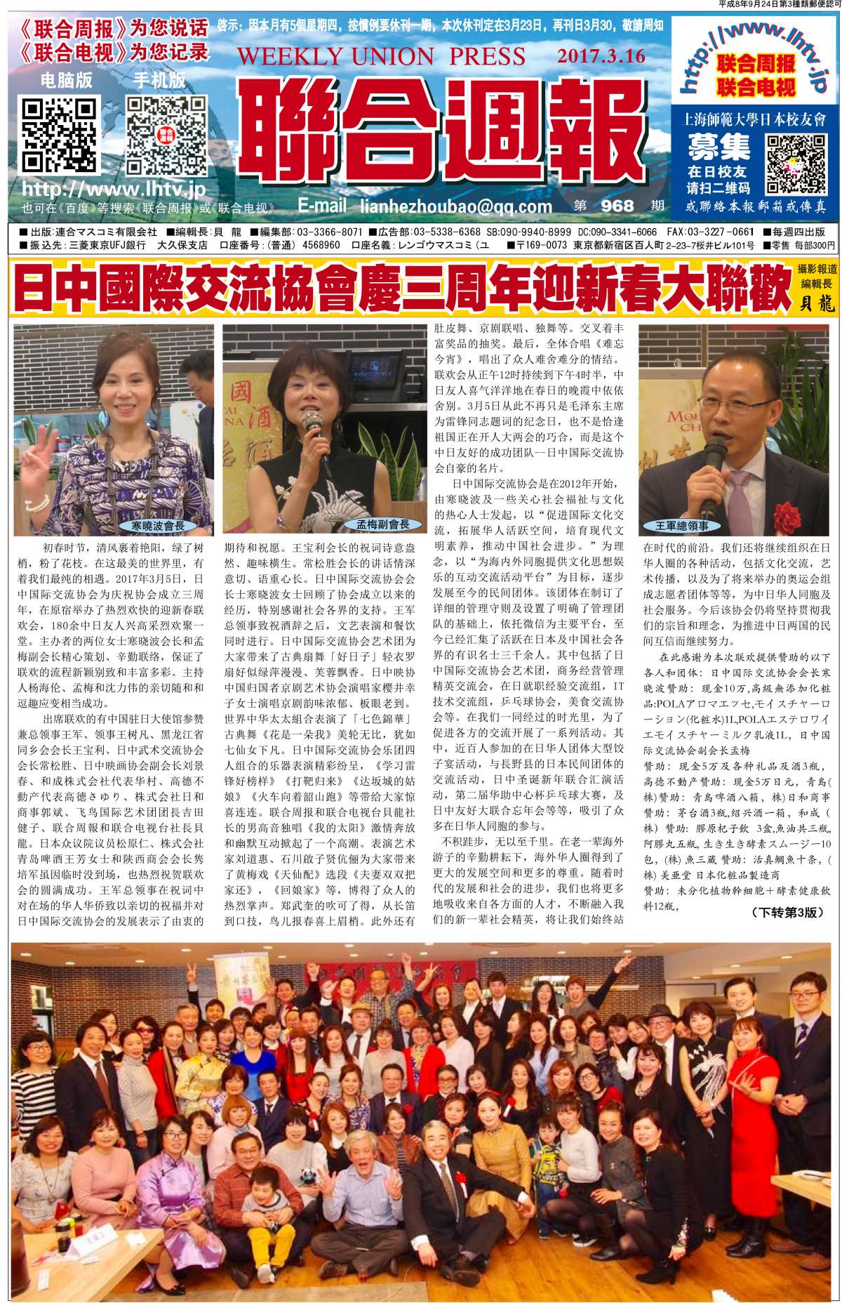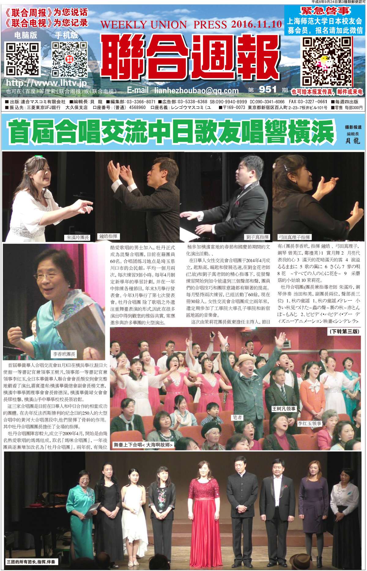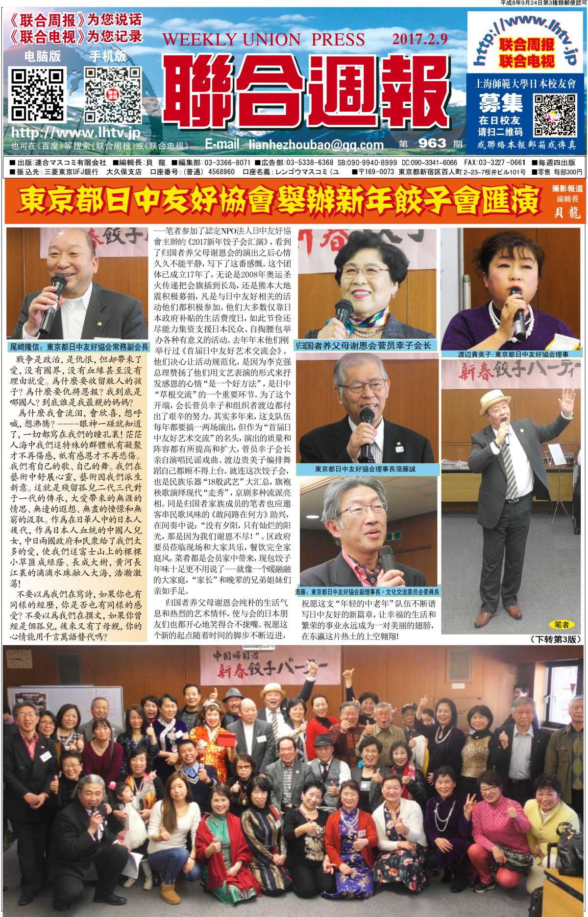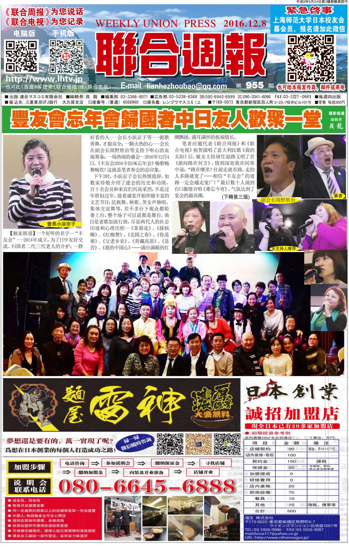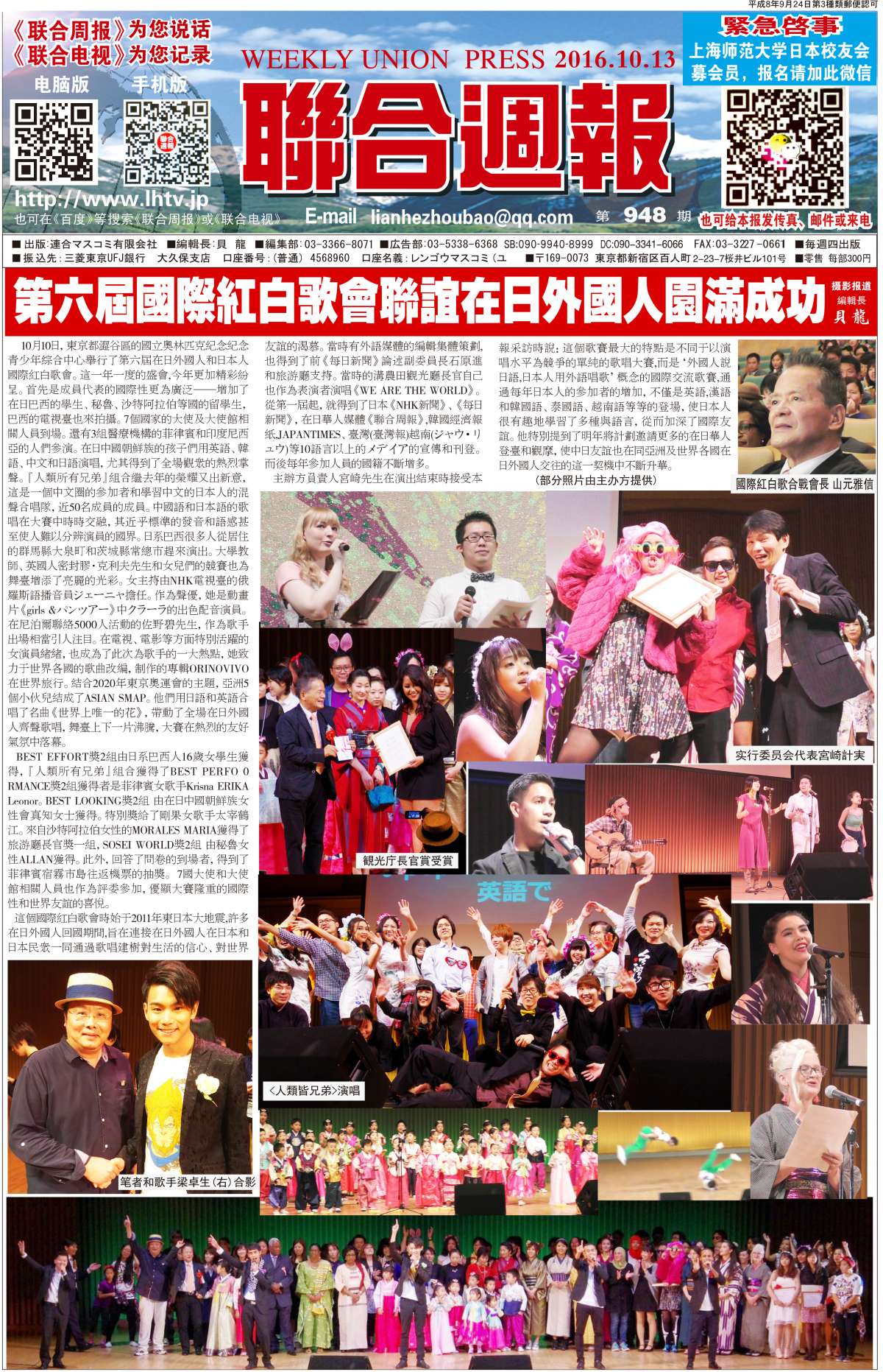 联合周报为您说话,联合电视为您记录。 广罗在日华人艺能人才