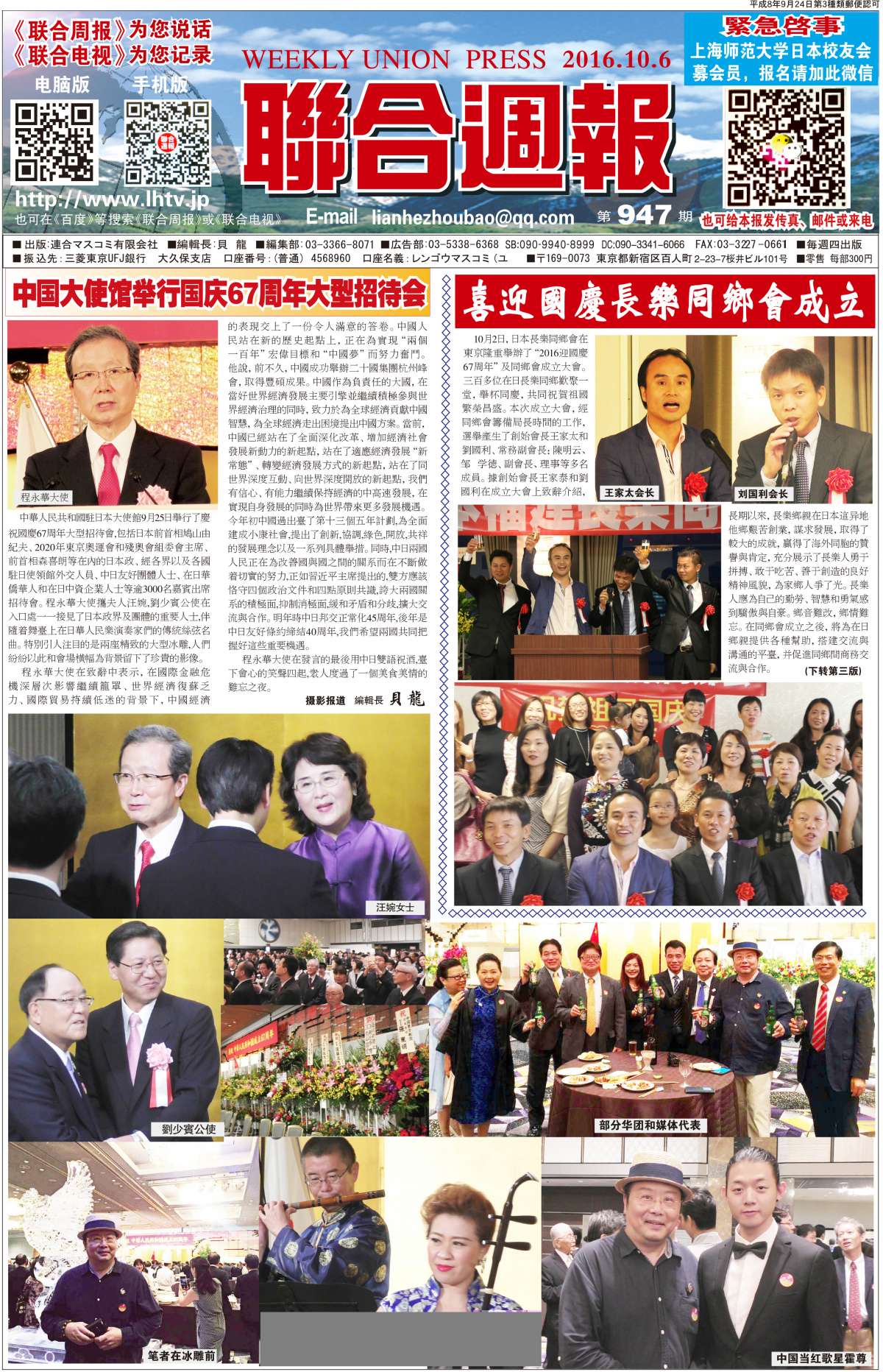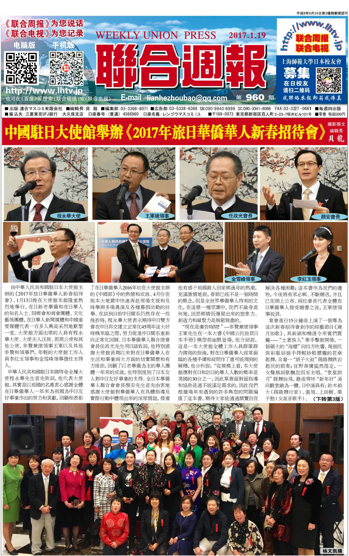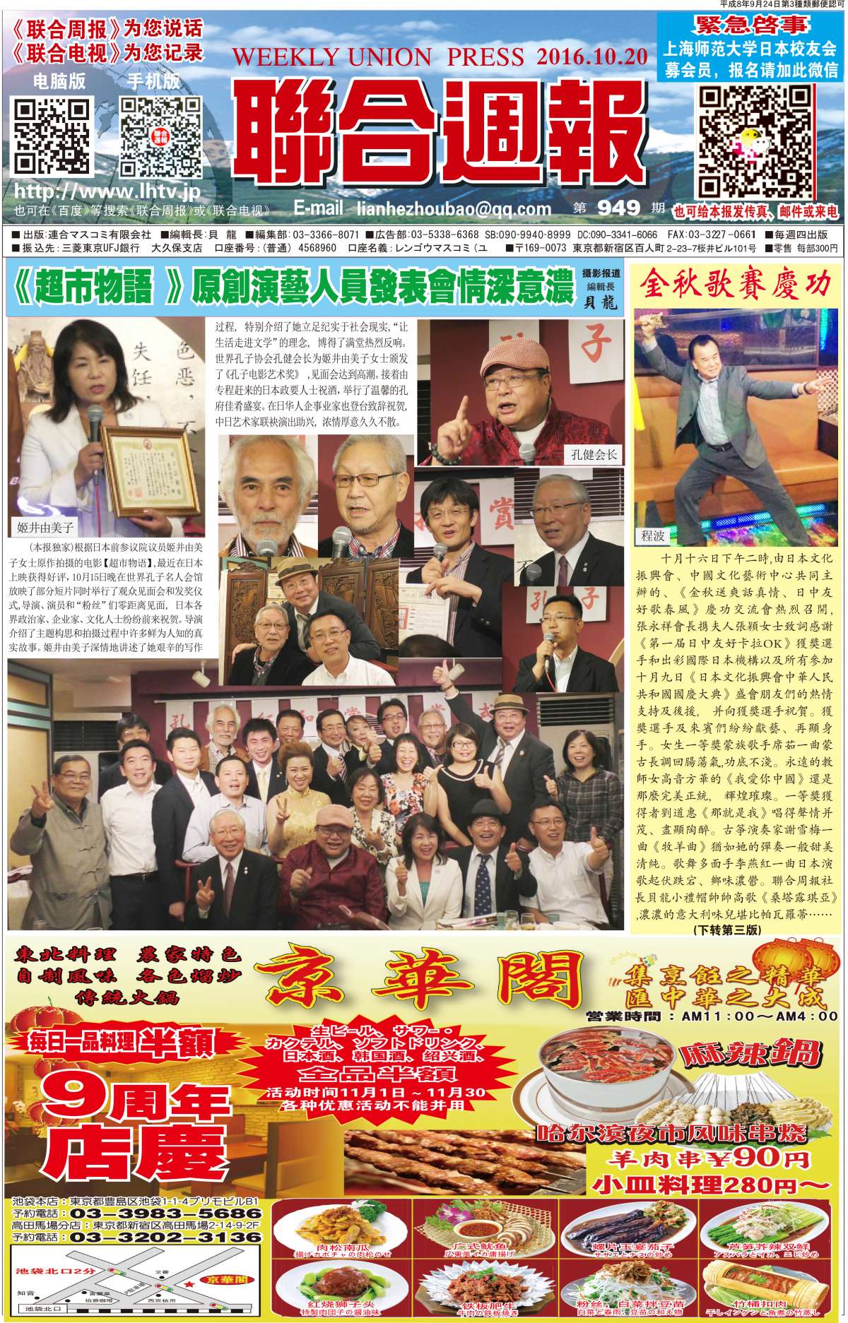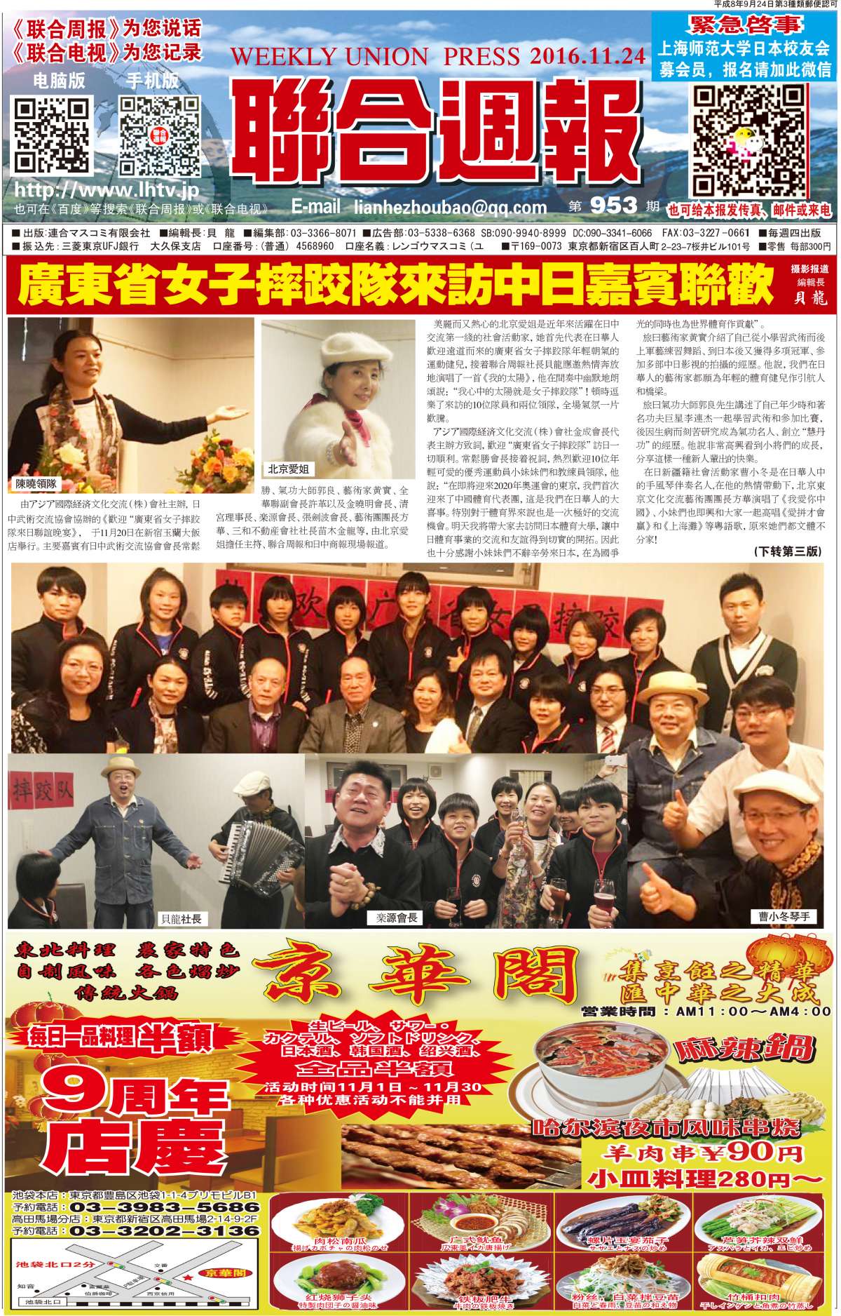 联合周报为您说话,联合电视为您记录。 广罗在日华人艺能人才