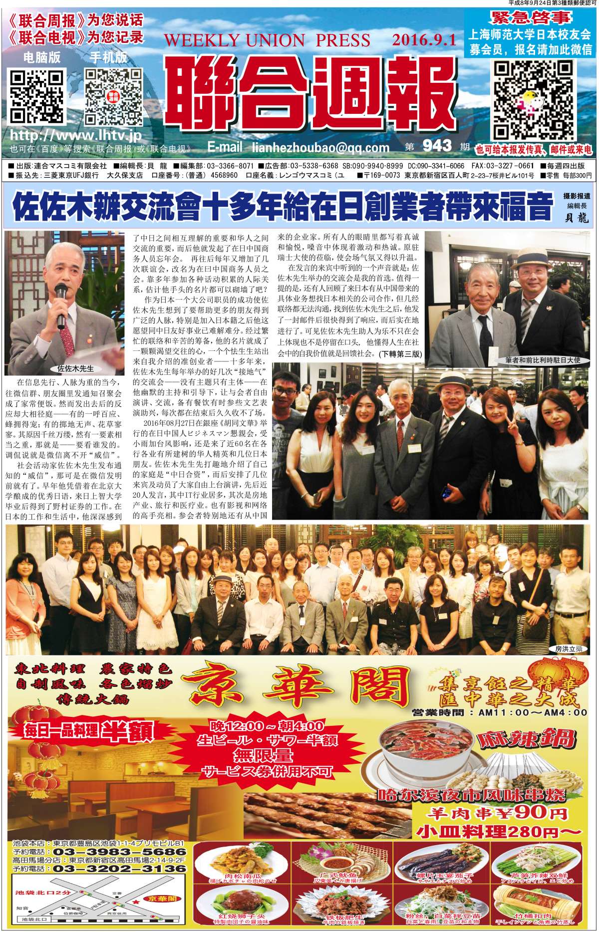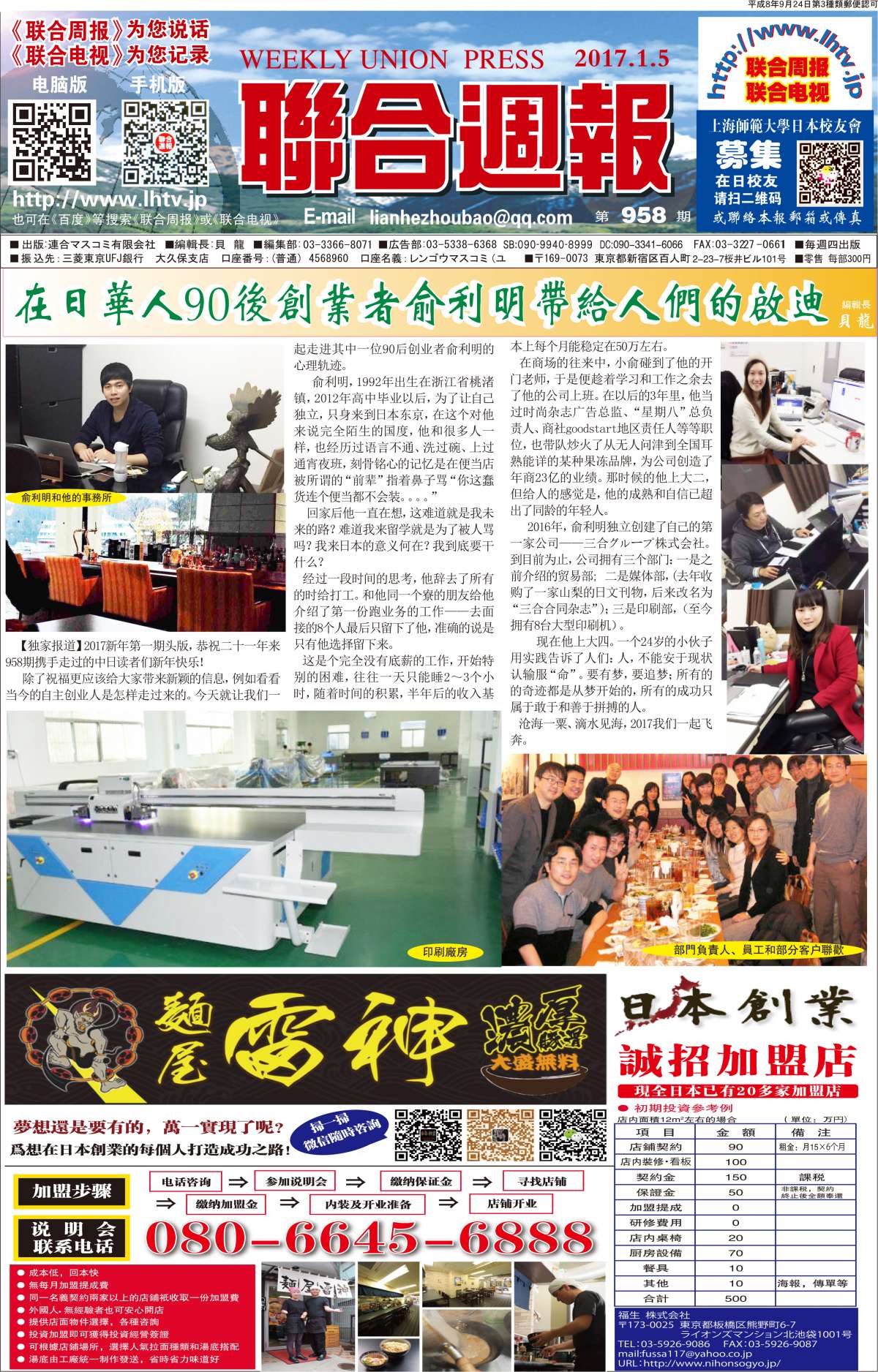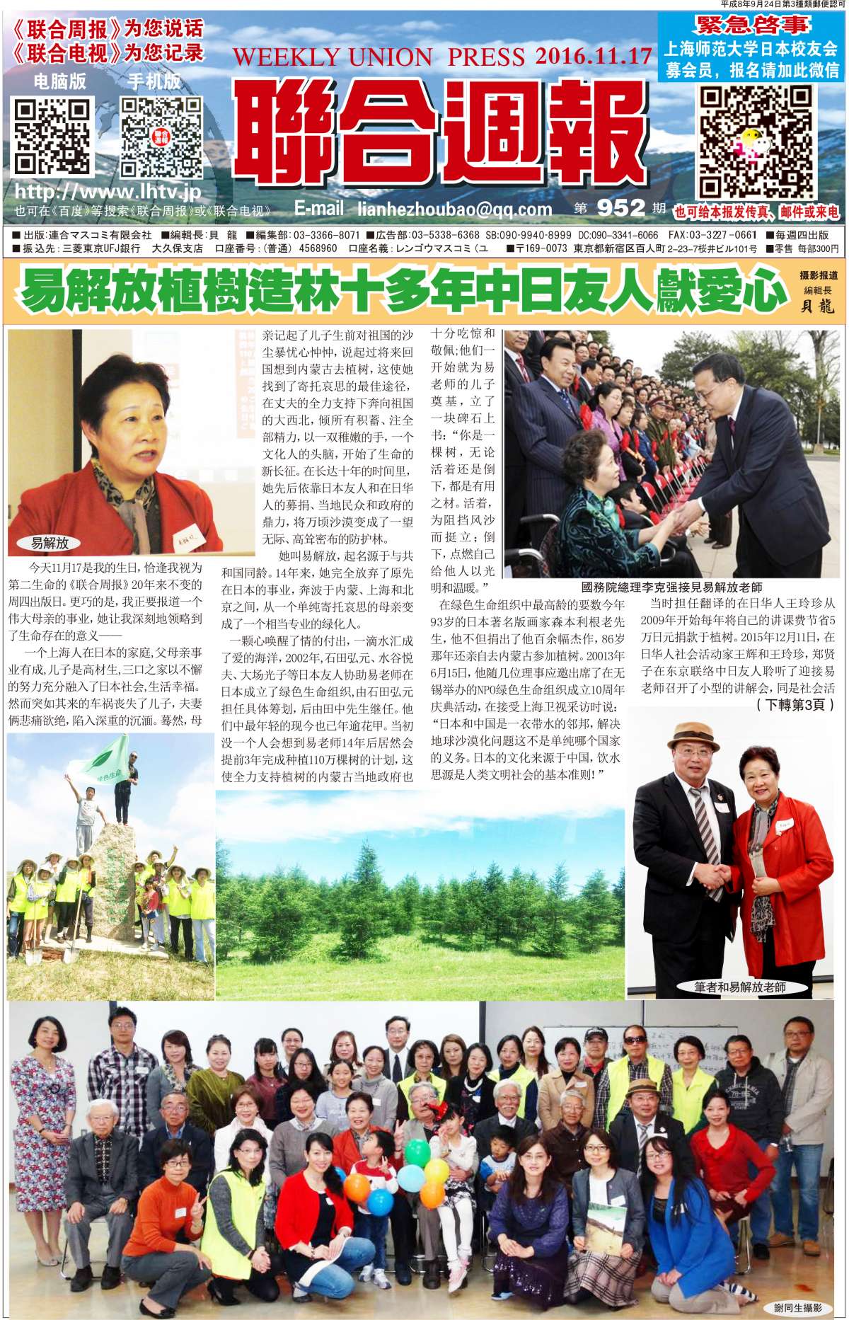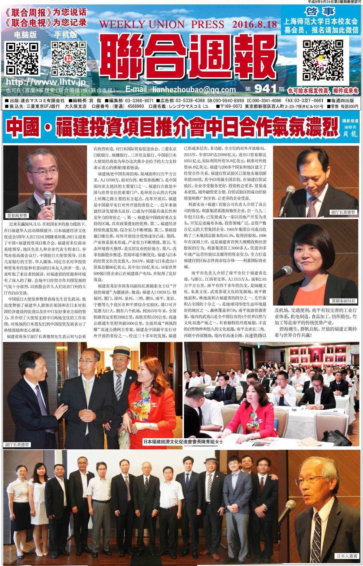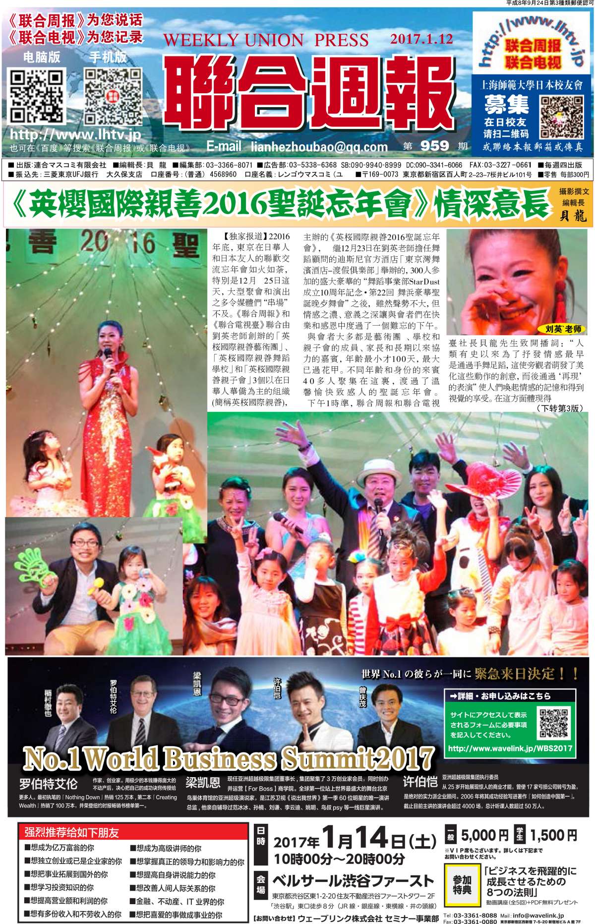 联合周报为您说话,联合电视为您记录。 广罗在日华人艺能人才